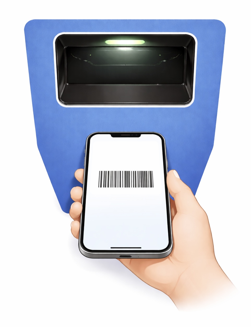 Halten Sie anschließend Ihr Handy wie dargestellt mit genügend Abstand unter den Scanner.